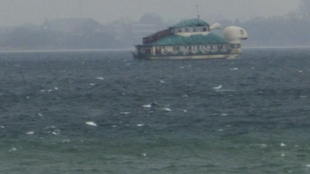 ふらりと立ち寄ったラーメン屋は、背脂ギットリでうどんのような太い麺でした。