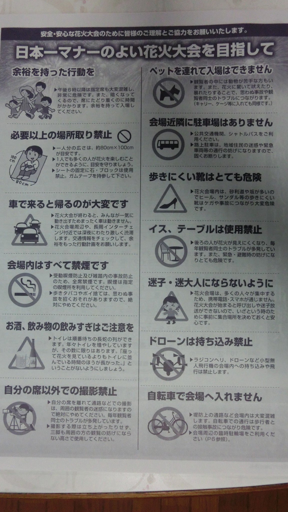 我が長岡は、花火大会のパンフにこんな注意書きが載ってました。