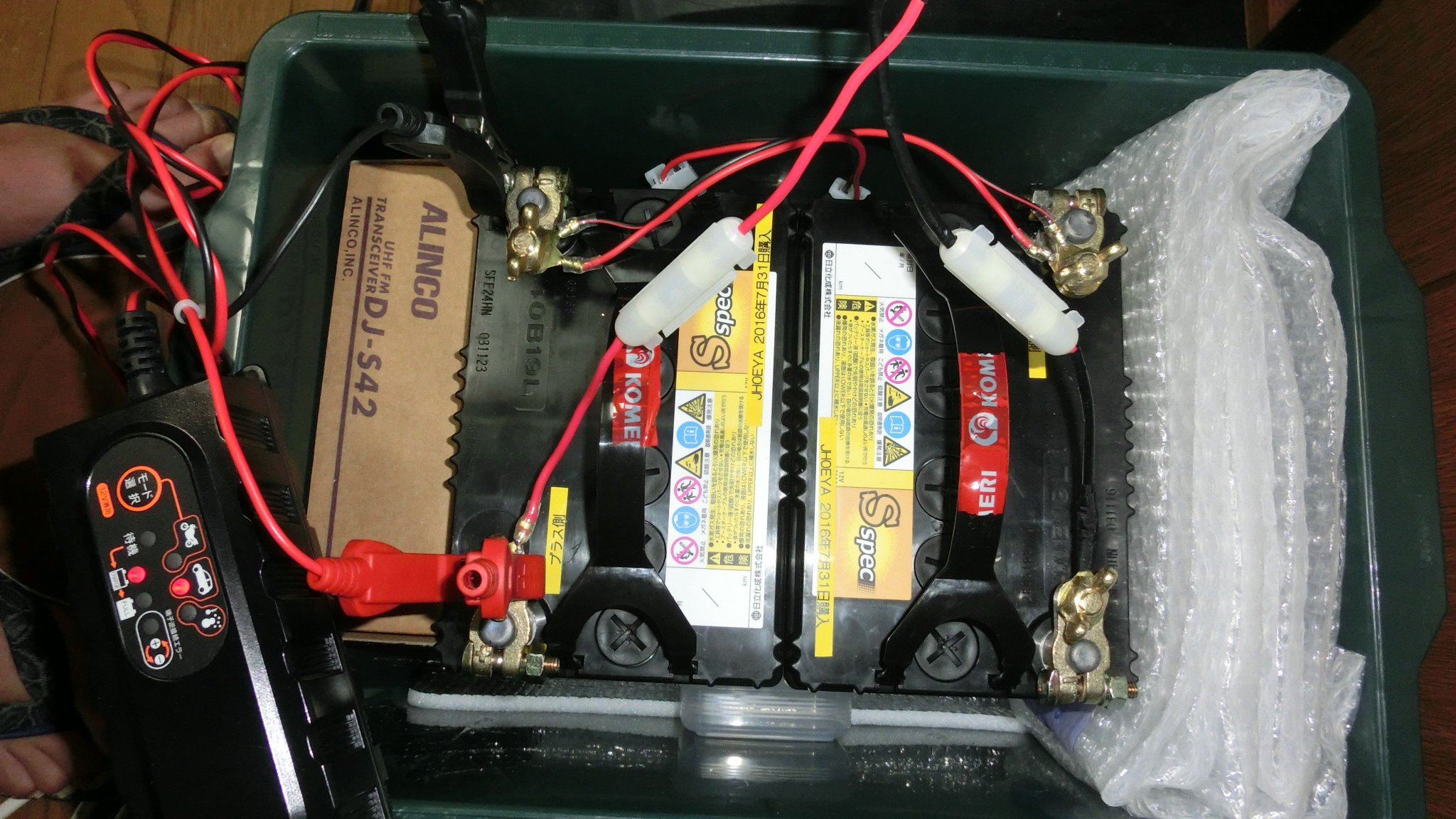 明日は雨かもしれないので、降ったら速攻で撤収できるバッテリでの運用を想定しているのですが