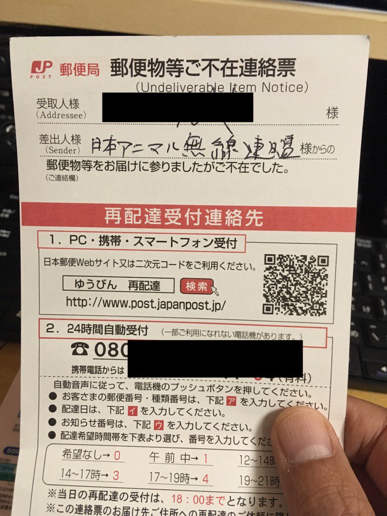 郵便物等不在連絡票