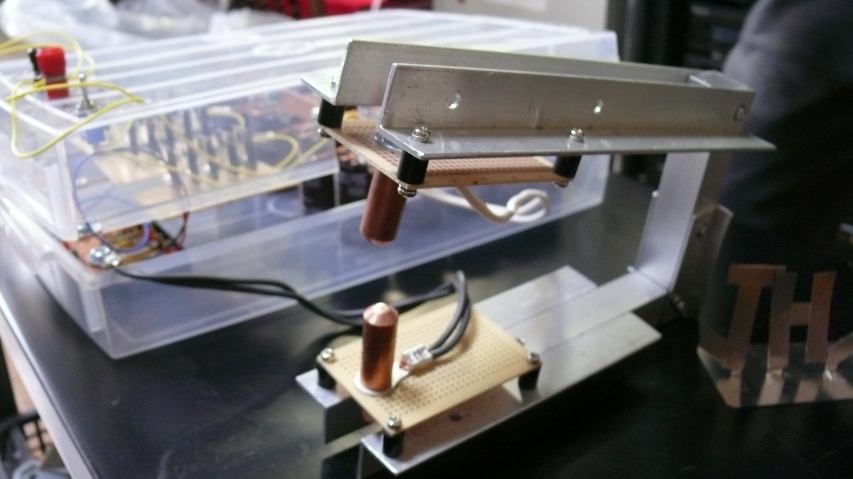 左下に乾電池が見えます。FETのゲート用であります。