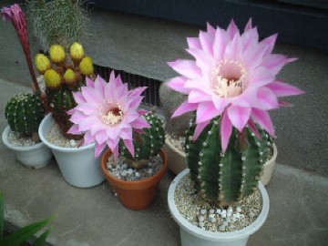 サボテンの花(2004/06) サボテンの花を見るたびにチューリップを思い出す私は年寄りでしょうか?(謎) 母親が育てているサボテンです。自分の趣味ではないので、何というサボテンなのか名前すら分かりませんが、開いている花を見たらきれいなので撮影してみました。 チューリップと言えばもう一曲、虹とスニーカーの頃という有名な曲がありましたっけ。「わがままは男の罪」まあそれは納得致しましょう。「それを許さないのは女の罪」おいおい・・・。(^_^ゝ |