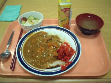 25年ぶりの寮メシ(2004/07) 母校の寮メシ(学生寮の昼ご飯)を25年ぶりに食べる機会に恵まれました。いや本当に久しぶりです。 当時の食器は黄土色したポリプロピレンか何かのプラスチック製だったのですが、この食器は高級感が漂います。しかも、サラダが付いているのであります。あのクイッピーは何処に行ったのでしょう?(謎) 何よりもスゴイのは、これはカレーじゃなくて「カツカレー」なのであります。カツカレーですよぉ!! 失礼しました。当時の貧弱な食堂事情と比較して思わず興奮してしまいました。 内装はきれいになったとはいえ、当時の面影が残る食堂でカレーを食べながら、学生気分を思い出していたのであります。食後に食器を片づけながら、大きな声で「ごちそうさまでした」の儀式を行ったのは言うまでもありません。 |