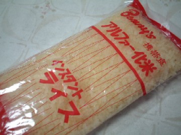 アルファ化米の試食(2004/11) 1986年以来、防災袋の中にず〜〜〜っとうずくまっていたアルファ化米です。水を注ぐだけでゴハンになるという非常時の優れものです。 いままでずっと、この代わりになるものを探していたのですが、入手できませんでした。 しかし、この度の震災でこの手の防災用品が店頭に並び、防災グッズが入手しやすくなりました。 毎年、せめて防災の日位は、これぐらいの品揃えにして欲しいものです。 さて、役目を終えたこのアルファ化米をどうするか? そりゃもちろん食べてみるに決まっているじゃあーりませんか! (ええ?18年前の食い物をーーー??) |
